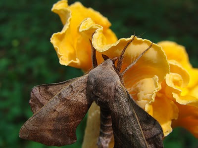 ReplyDeleteI don't think yours is a Walnut Sphinx--they have that wild wing structure, it wasn't just holding its wings funny. I think #3, the stealth-fighter streamlined one, is a Laurel Sphinx. I think that pretty yellow-orange one may be a "Rose Hooktip"--Oreta rosea. That other brown, one, that's like the LBM's...no idea.
