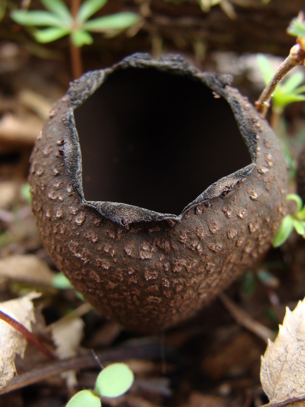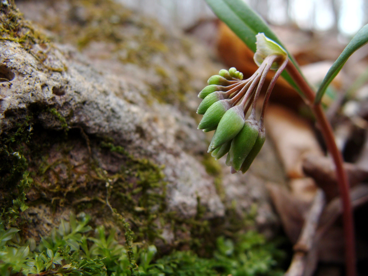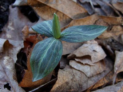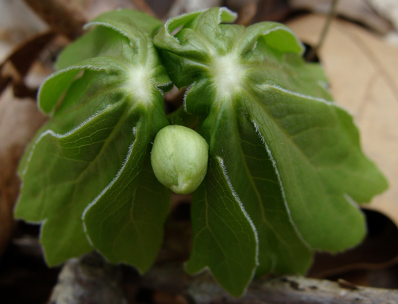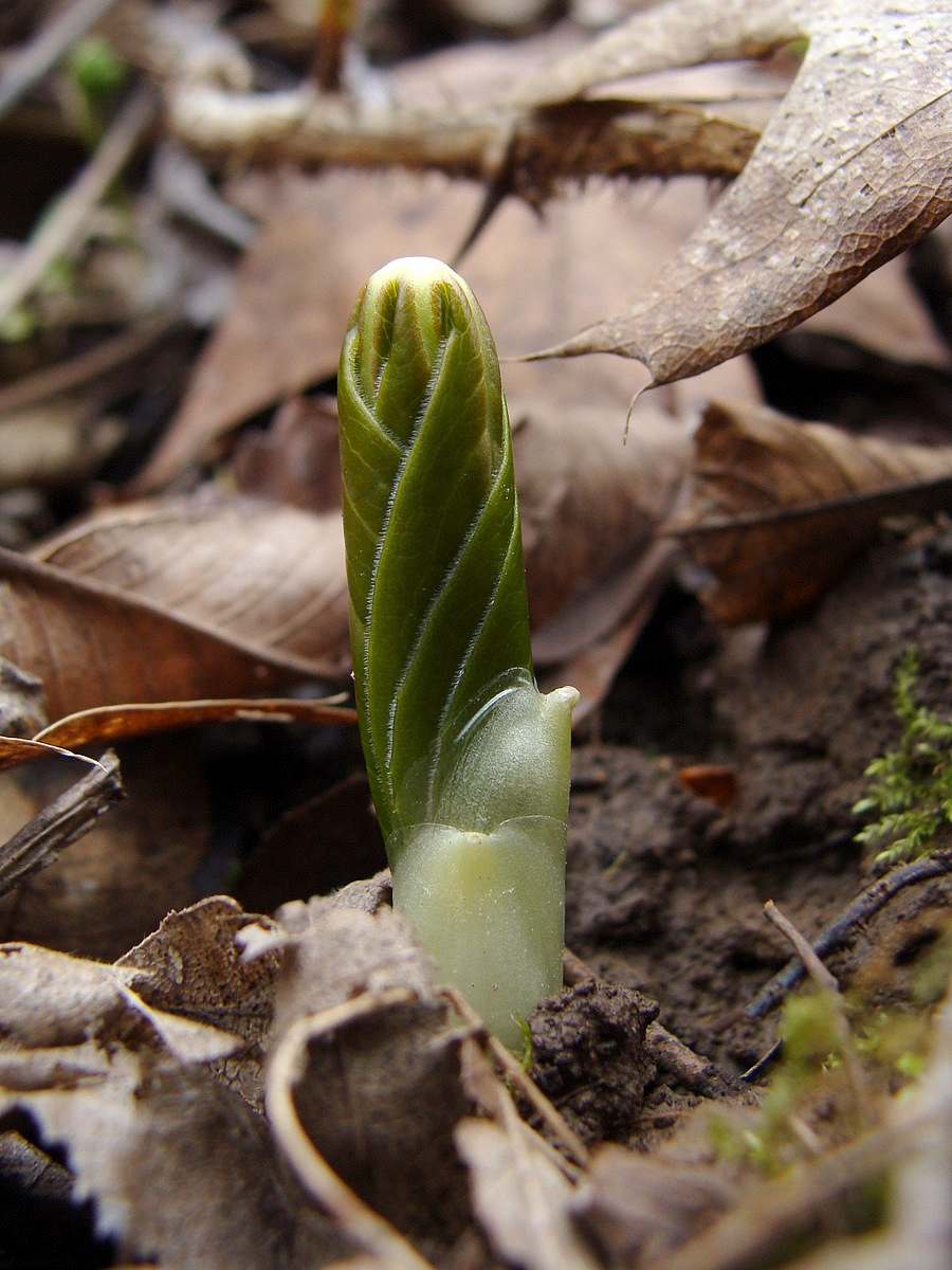 One last thing. I keep finding may apples that have grown through a hole in a dead leaf as they emerge in spring, and they get pretty tall with this leaf stuck around them: