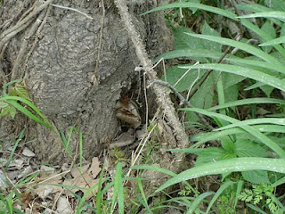 Here he is, well-camouflaged near the base of the tree.